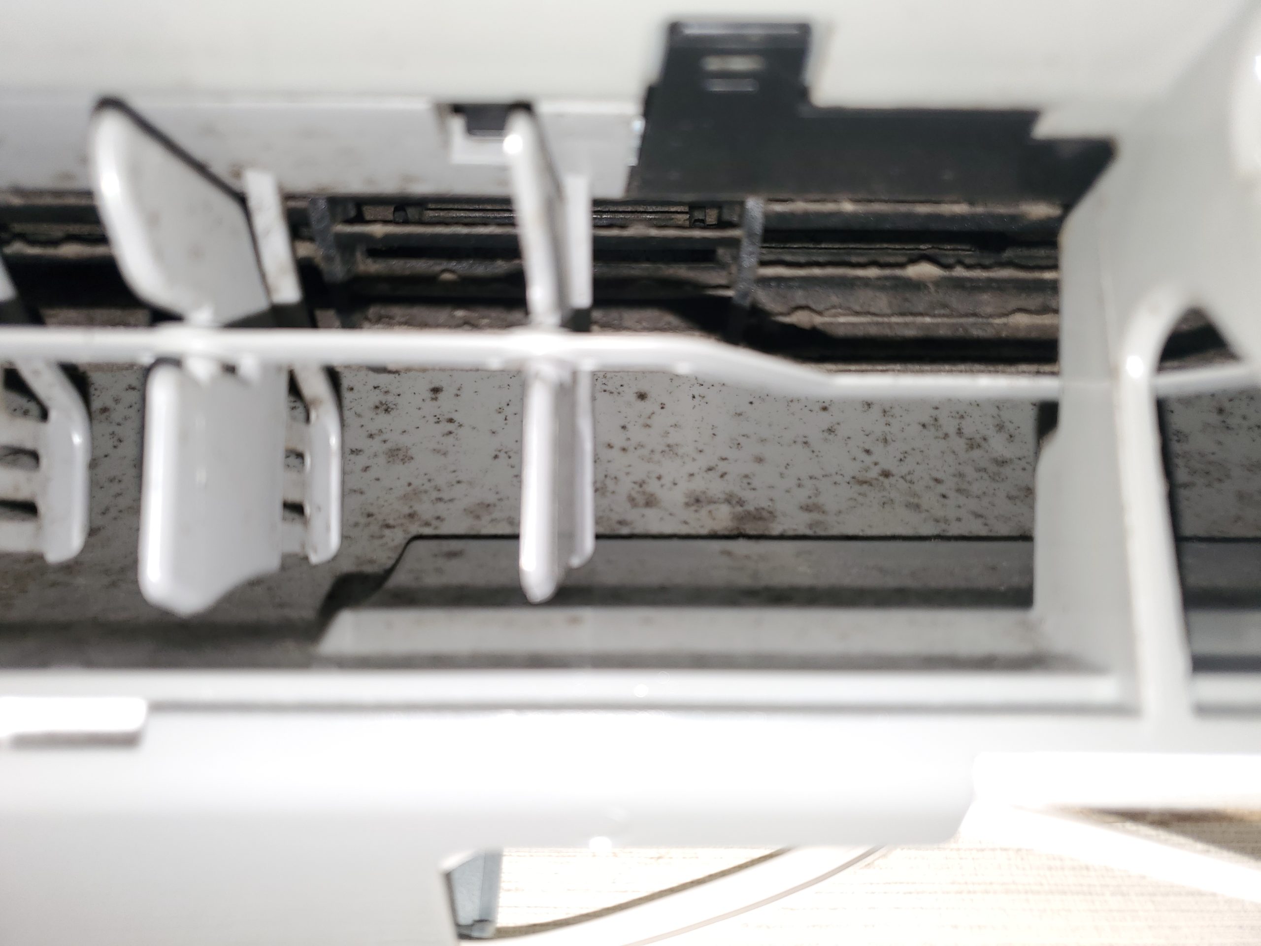 今回は寝室に設置のエアコンが全体に汚れ・カビが付着していました。