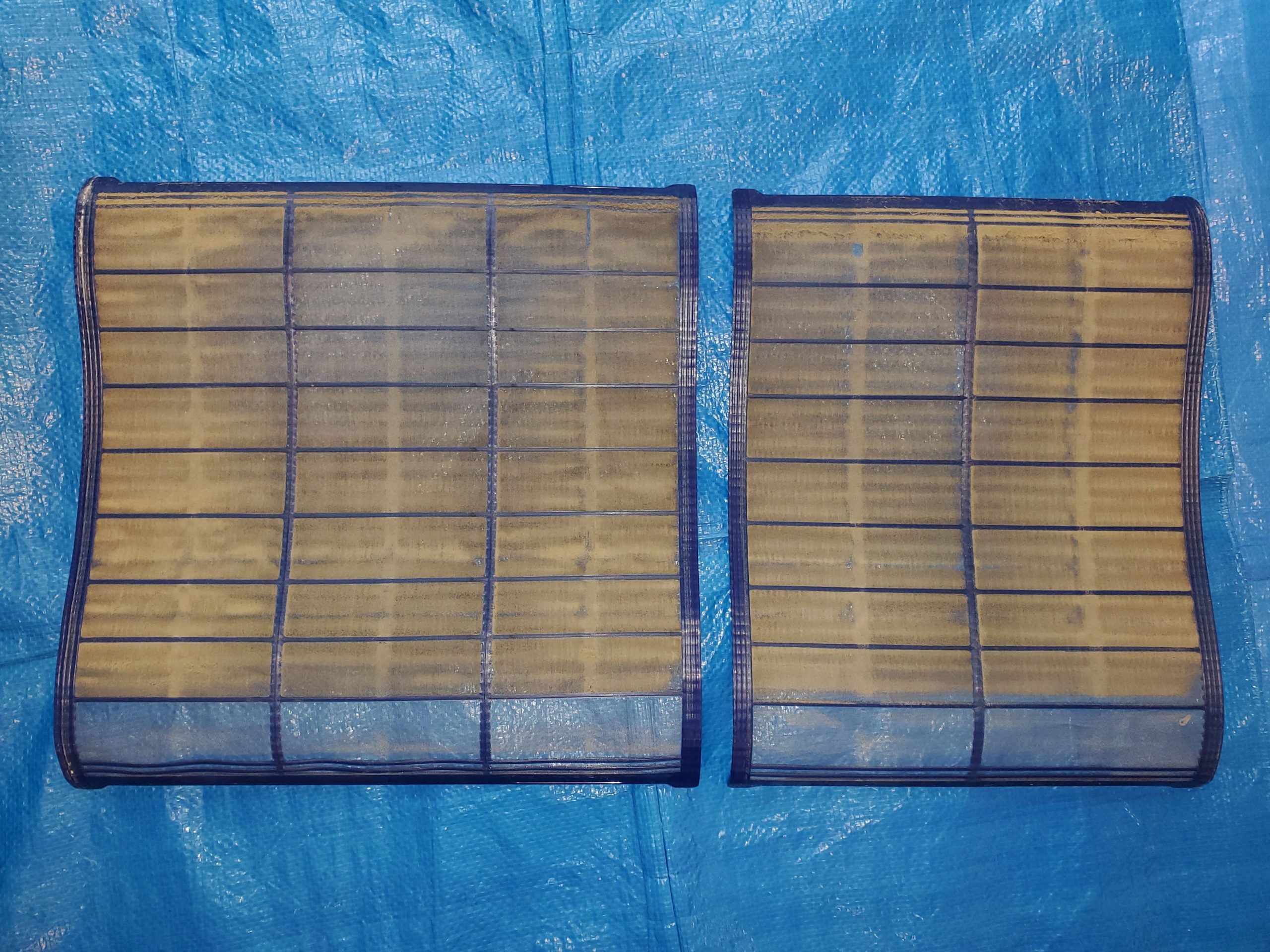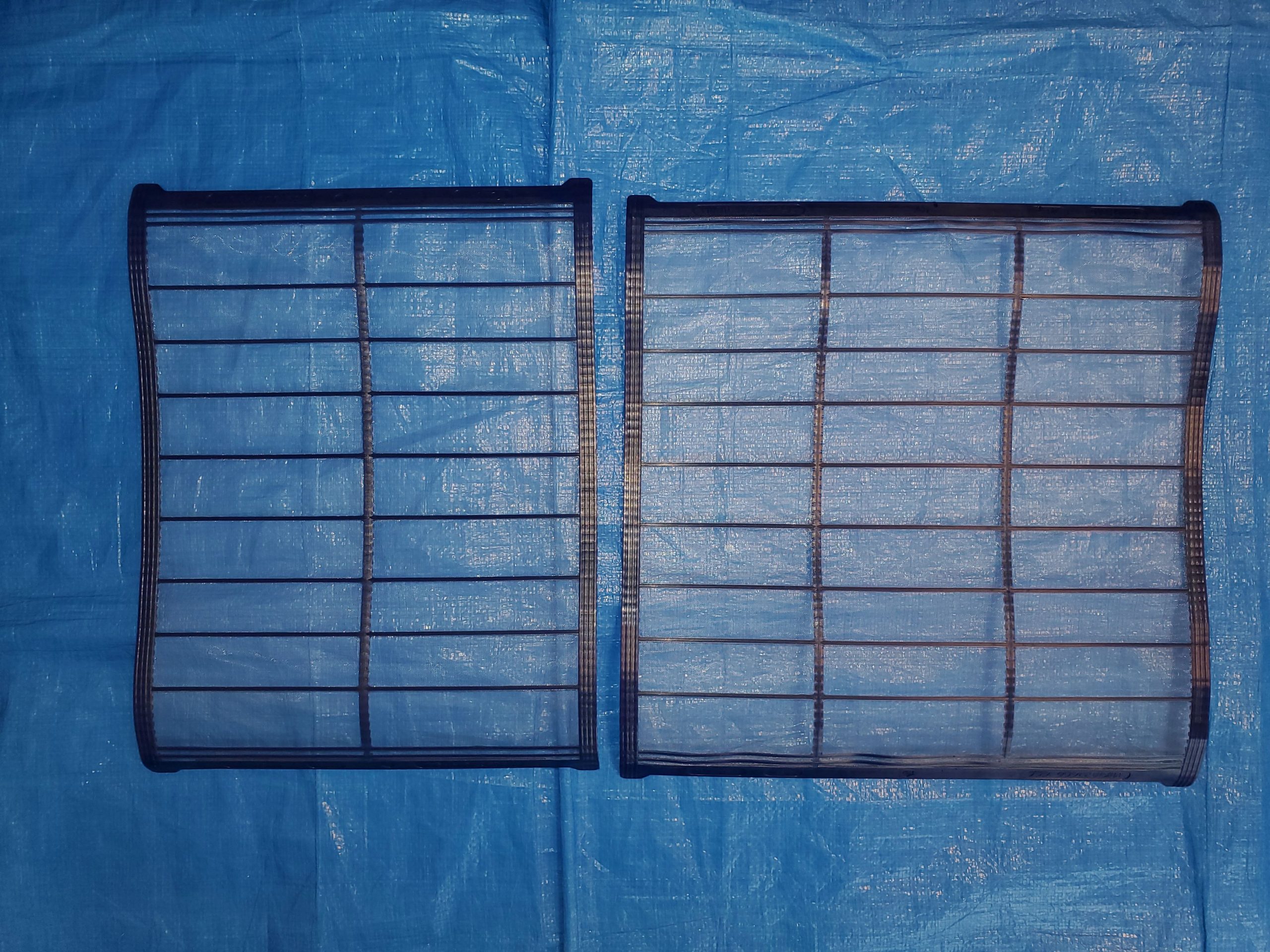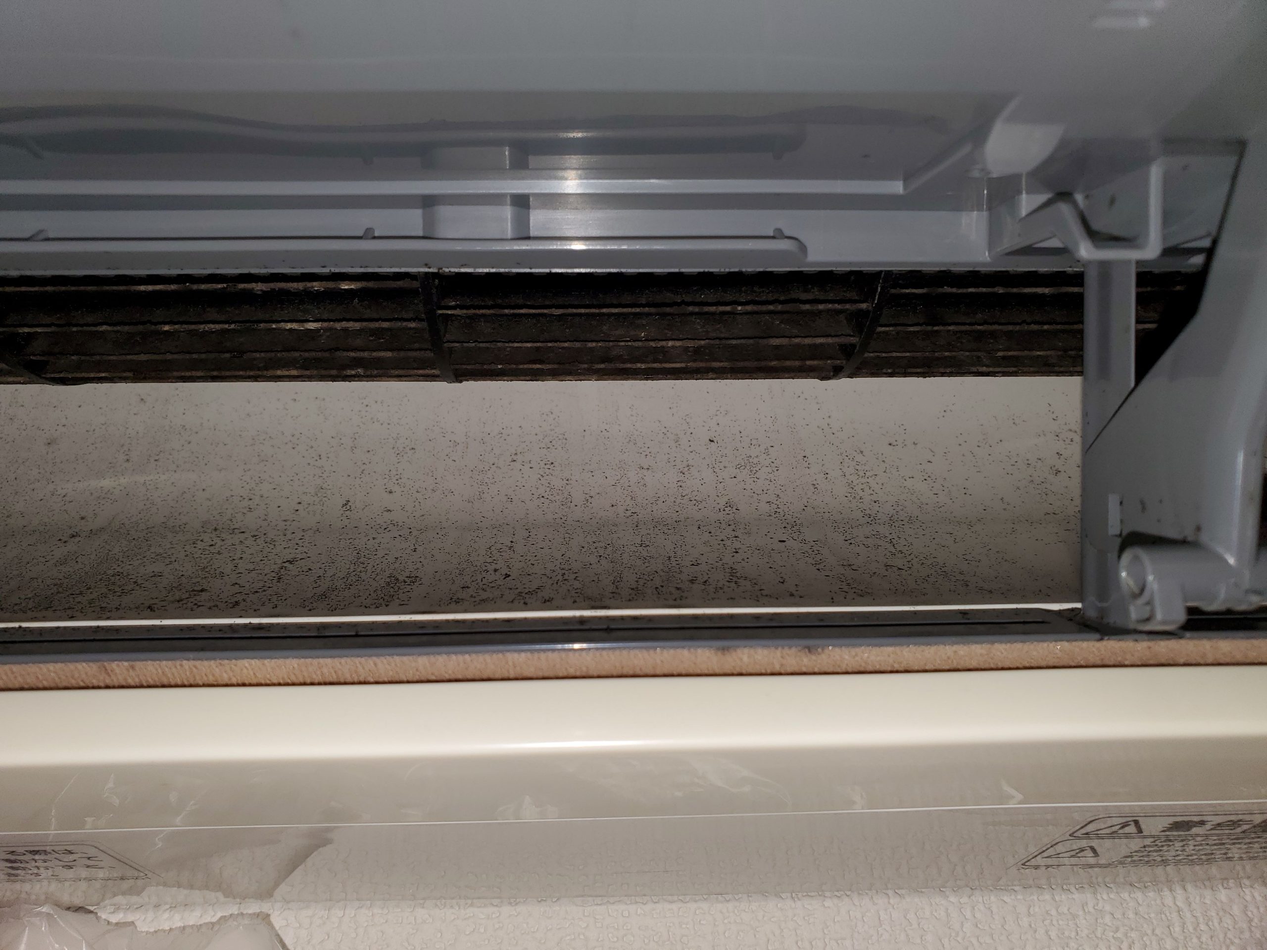 今回はリビングと寝室のエアコン2台の作業でしたが、全体に汚れ・カビが付着していました。