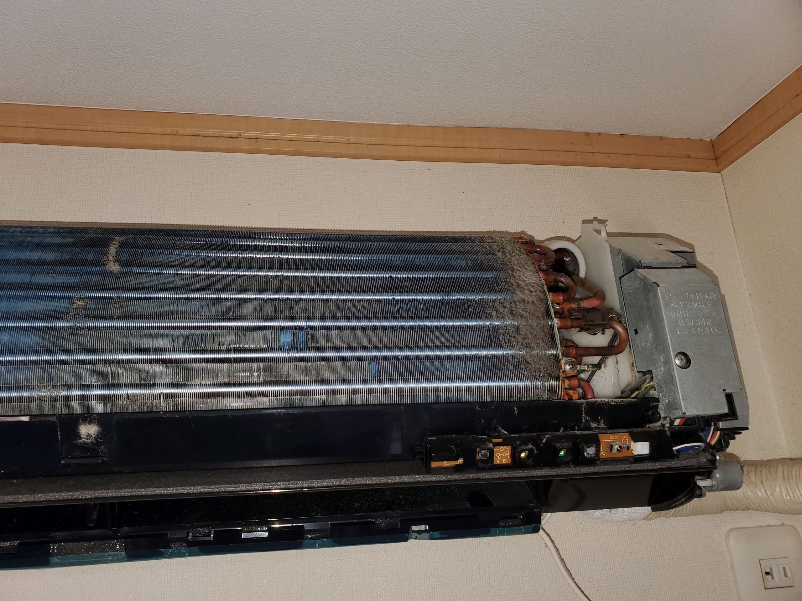 エアコン全体に汚れ・カビが付着していました。