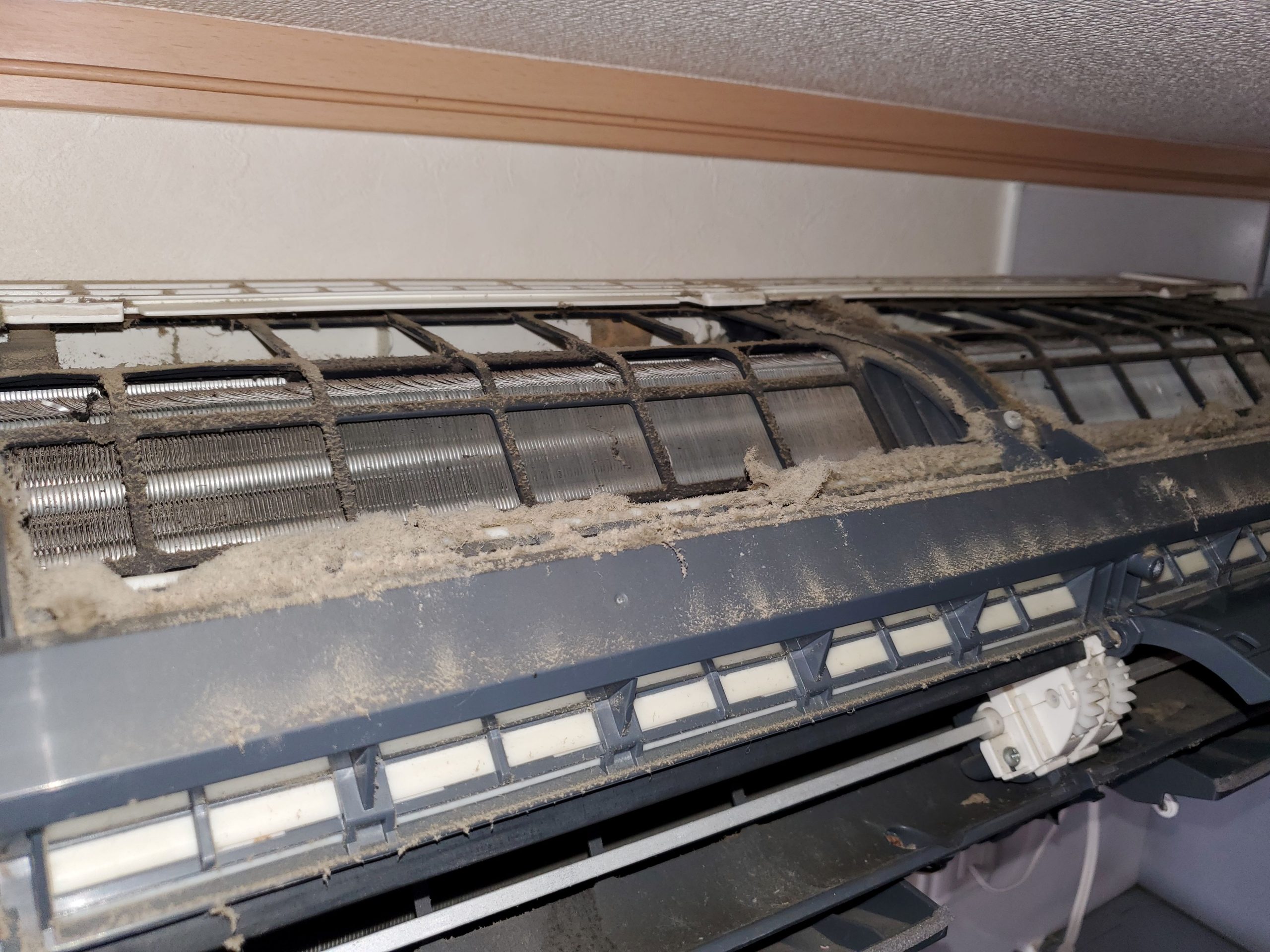 設置場所がレンジフードの真横ということもあり、油とホコリが混ざり合った「物凄い汚れ」が蓄積していました。