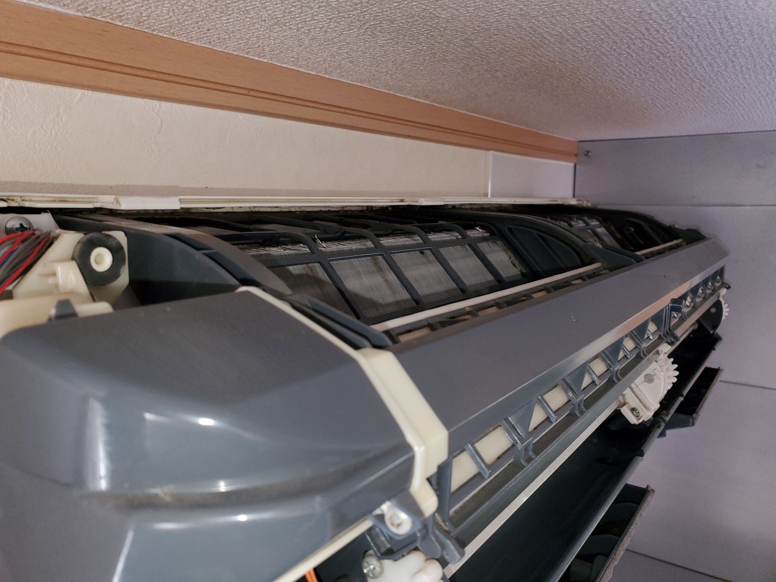 【さいたま市北区】シャープ製お掃除機能付き|レンジフード真横の15年分蓄積汚れをリセット!|さいたま市のエアコン掃除ならおそうじプランニング